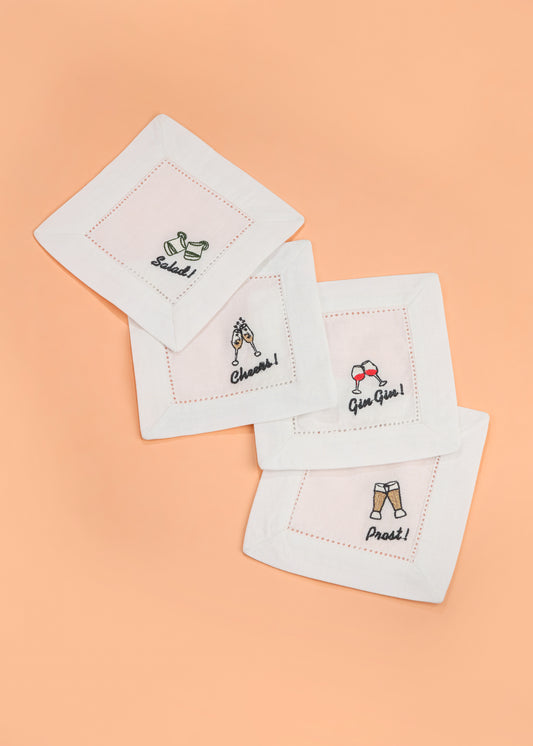 Gin & Greens Toasting Embroidered Cocktail Napkins