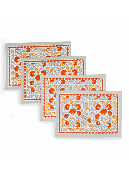 Scarlet & Slate: Floral Block Print Cotton Placemats