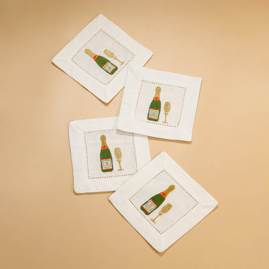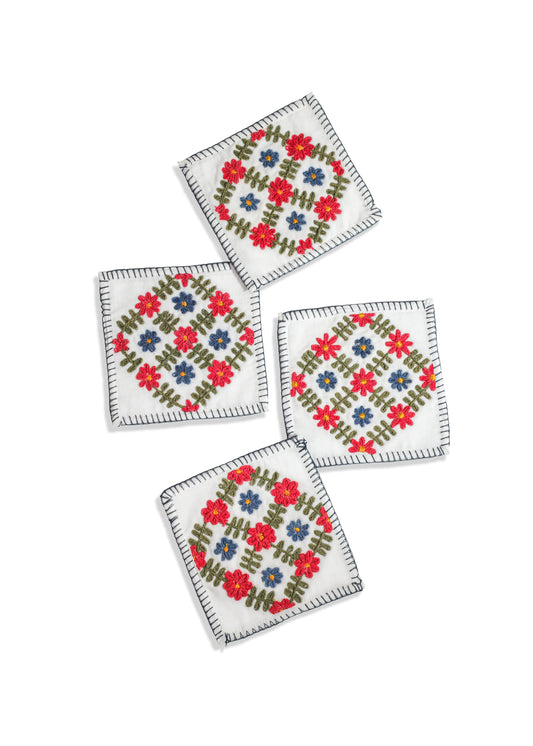 Verdant Bloom Hand-Embroidered Cocktail Napkins