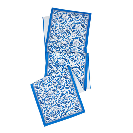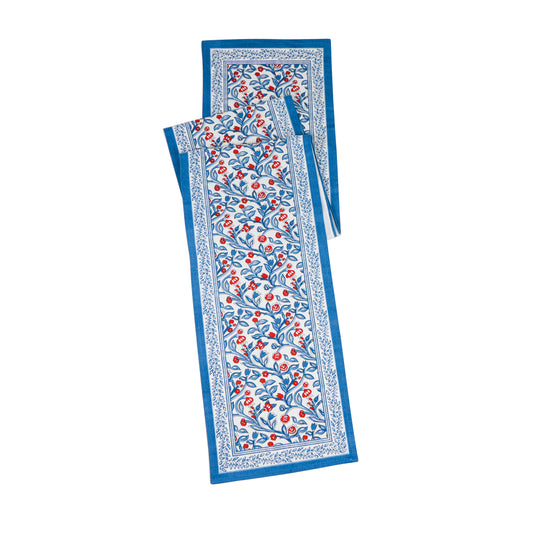 Scarlet & Slate: Floral Block Print Cotton Table Runner