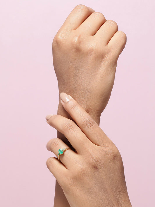 Tiramisu 0.78 Ct Green Onyx Solid 10k Yellow Gold Ring Jewelry