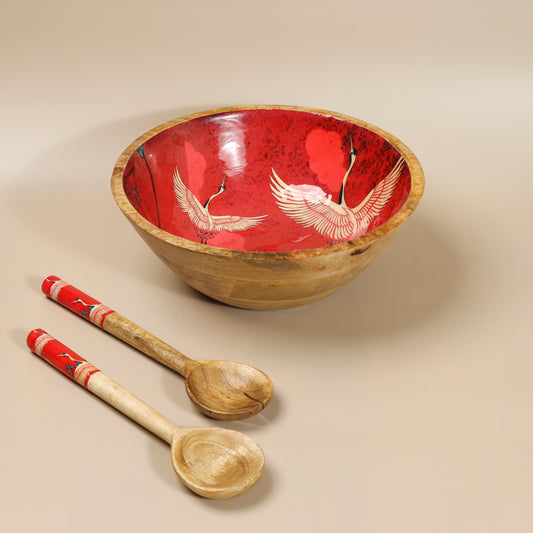 Crimson Flying Fauna Salad Bowl with Salad Servers
