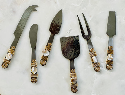 Mother Of Pearl and Steel Cheese Tools (Set of 6)