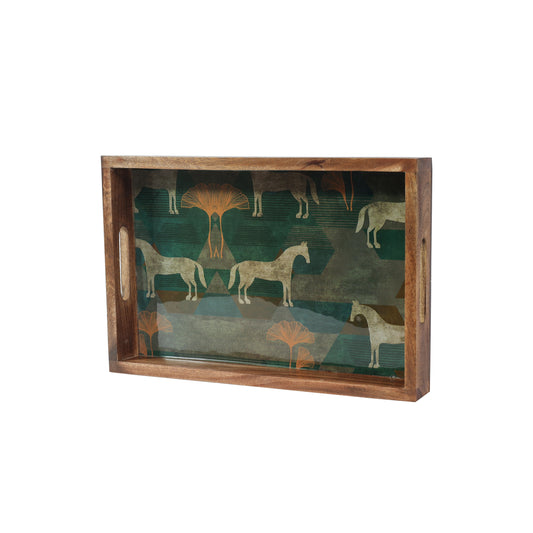 Moon Horse Resin And Wood Decorative Trays- Set of 3