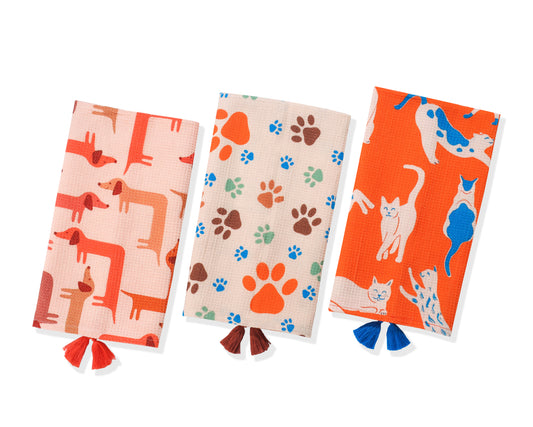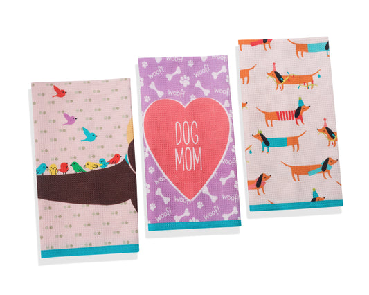 Whimsical Dachshund Trio Cotton Kitchen Towel Set