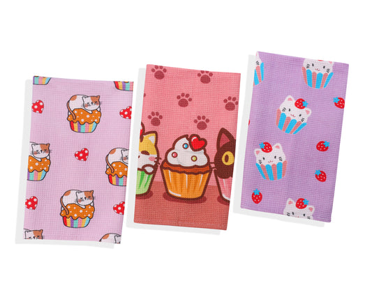 Kawaii Cupcake Cat Cotton Kitchen Towel Set