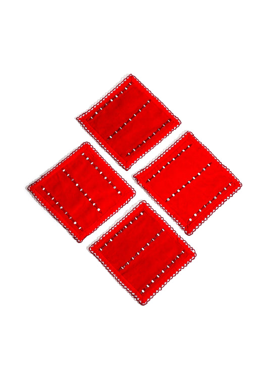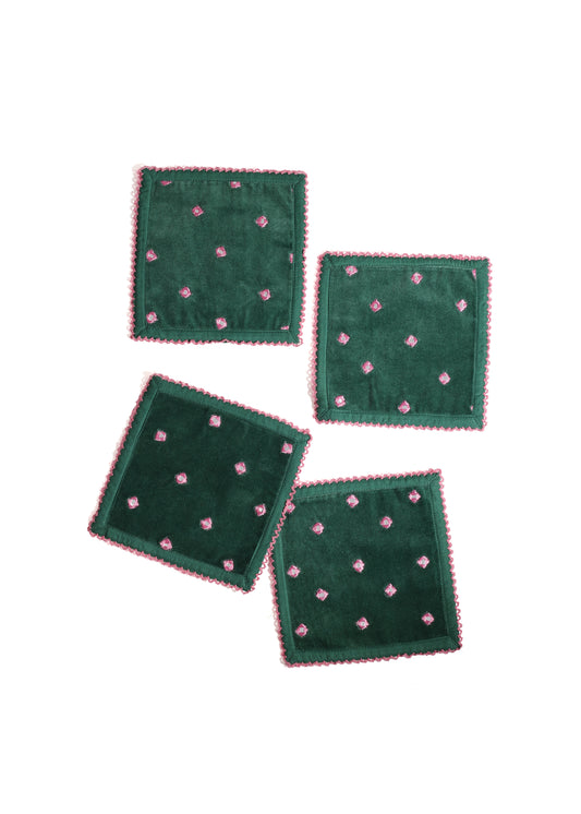 Verdant Bloom Hand-Embroidered Cocktail Napkins
