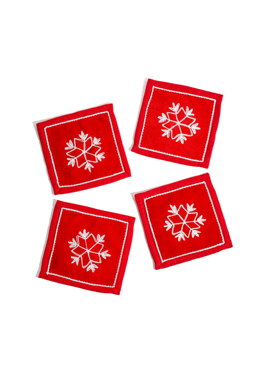 Snowflake Sparkle Embroidered Cocktail Napkins