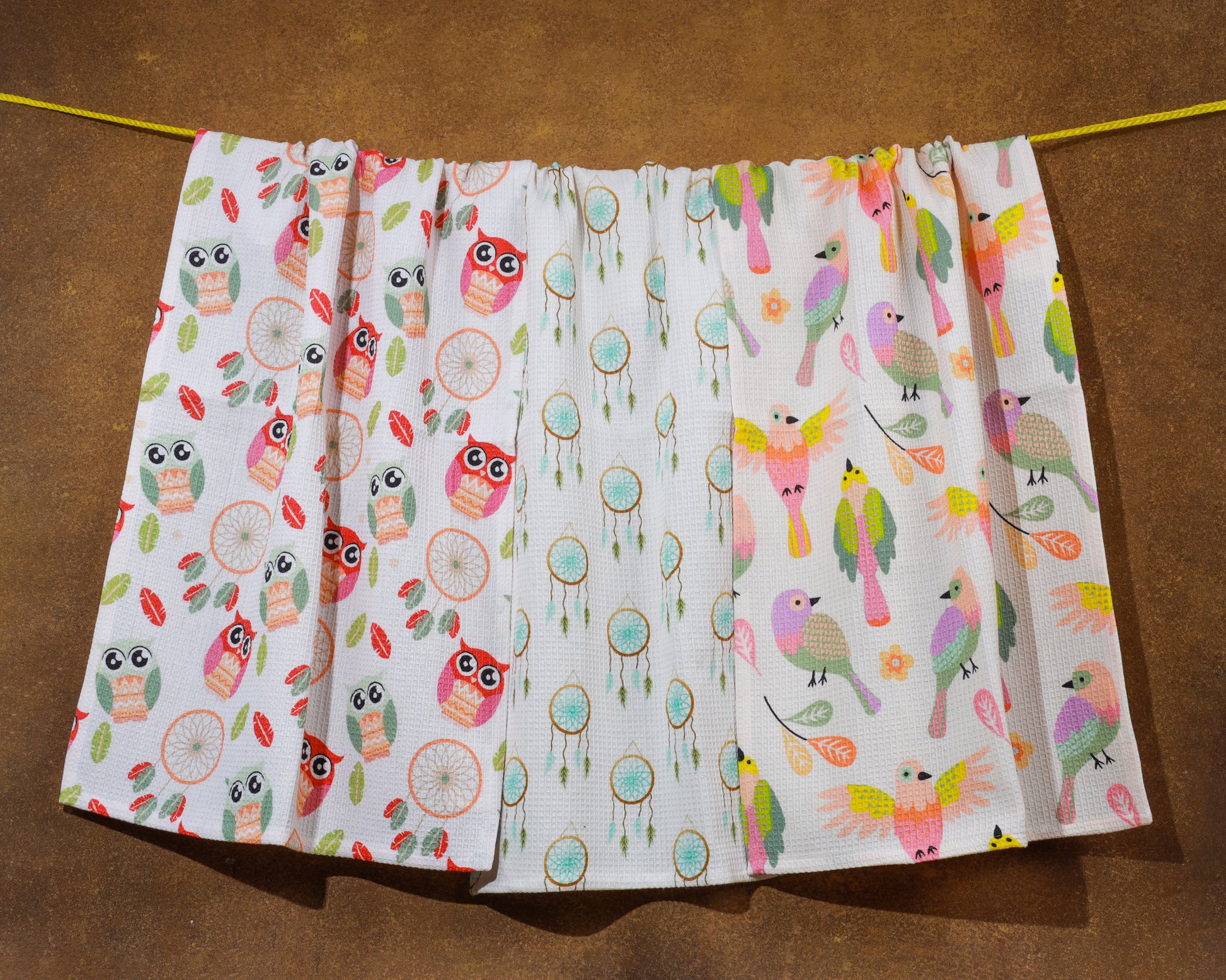 - Product Description: Embrace a touch of free-spirited charm with this beautiful bohemian towel set. This whimsical collection of three 100% cotton towels features delightful illustrations of owls, birds, and dreamcatchers in a soft, earthy color palette.