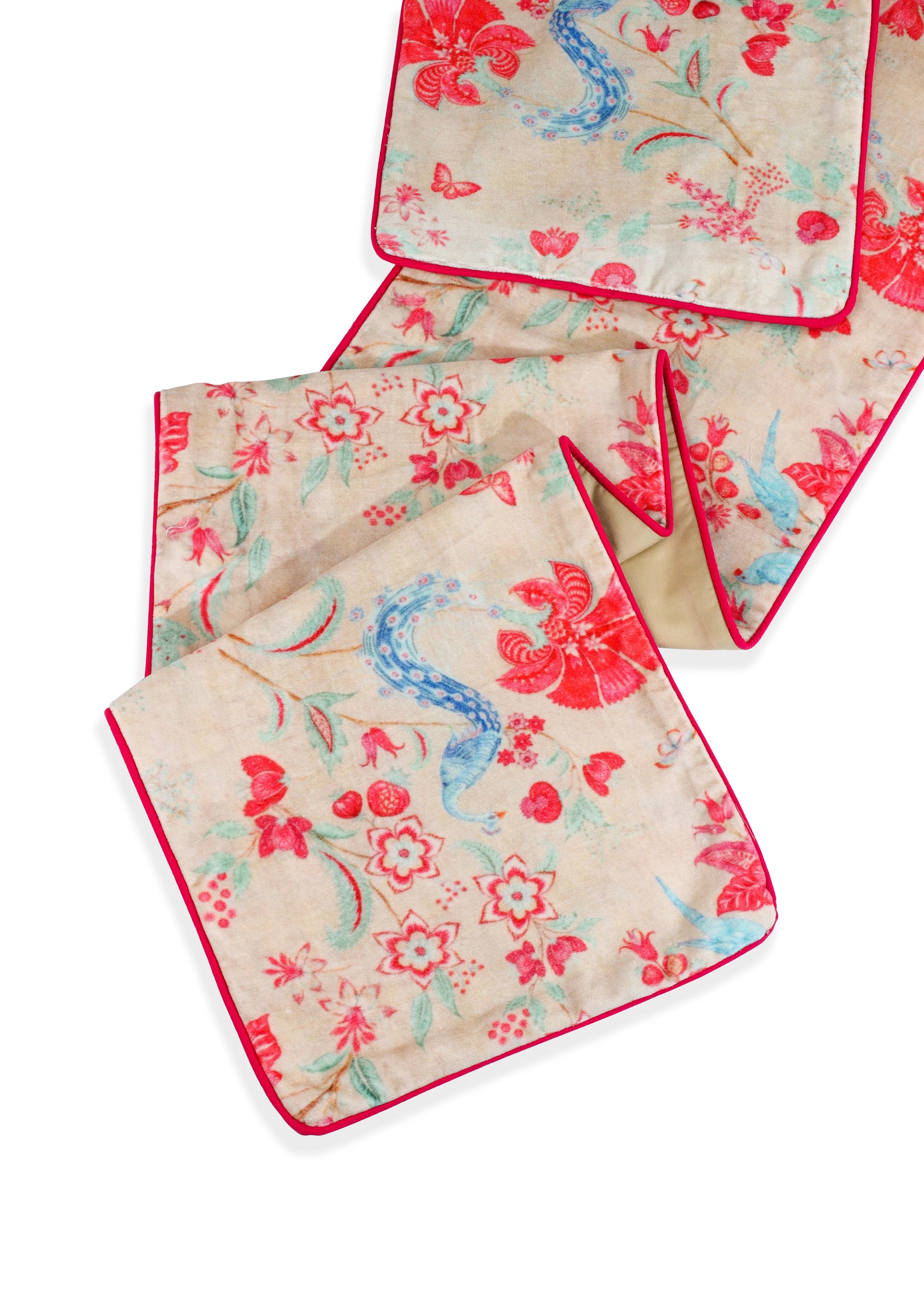 - Design details: Step into a world of unparalleled luxury with the Celestial Rosewood Velvet Runner. This breathtaking piece combines the richness of rosewood tones with delicate floral accents, creating a harmonious blend of color and texture. The velvet fabric not only adds a touch of opulence but also ensures a sumptuous feel, making it an ideal choice for those who seek a touch of elegance in their home. Perfect for formal dining or as a statement piece in your interior décor.