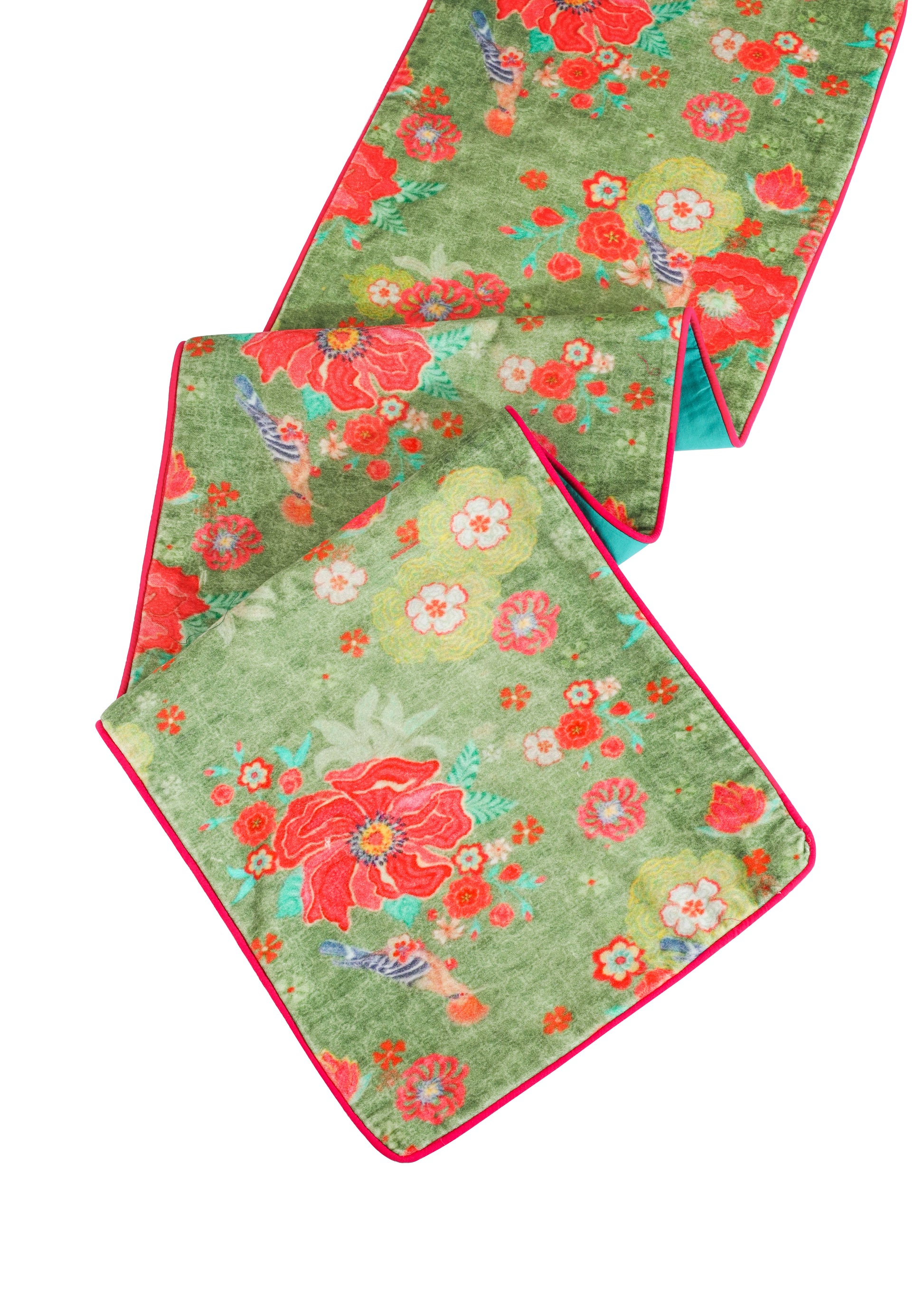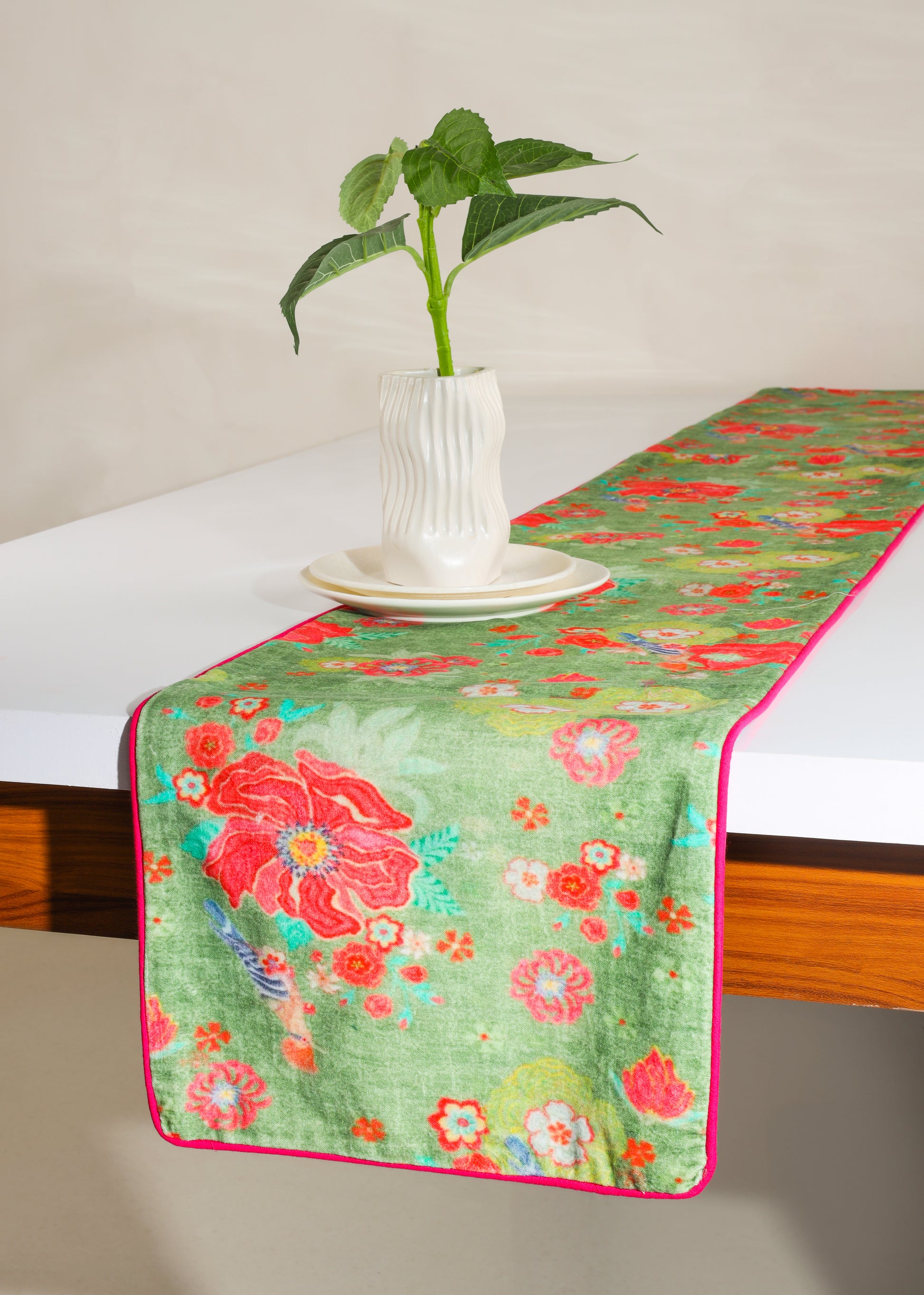 - Design details: Transform your dining space into an oasis of luxury with the Emerald Enclave Velvet Tapestry. This stunning velvet runner features an enchanting blend of lush botanical motifs in deep, earthy tones, exuding a sense of sophistication and warmth. The emerald green backdrop enhances its regal appeal, making it a must-have for those who appreciate the finer things in life. Perfect for grand celebrations or as an elegant addition to your home décor.