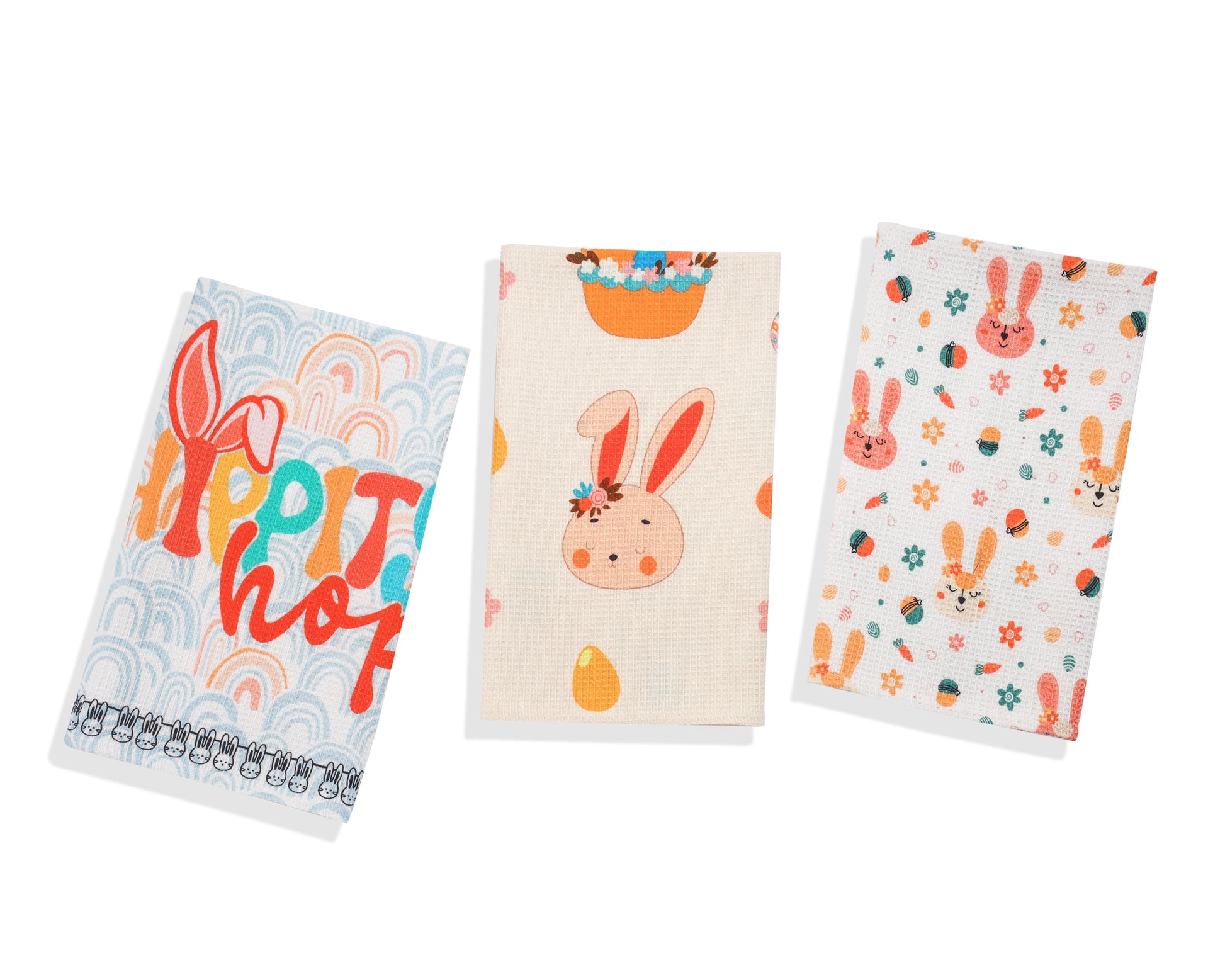 - Product Description: Add a fun, modern bounce to your spring decor with this "Hip Hop" bunny towel set! This cheerful collection of three 100% cotton towels is perfect for celebrating the season, featuring playful graphics and a bright, contemporary color palette that's sure to bring a smile.