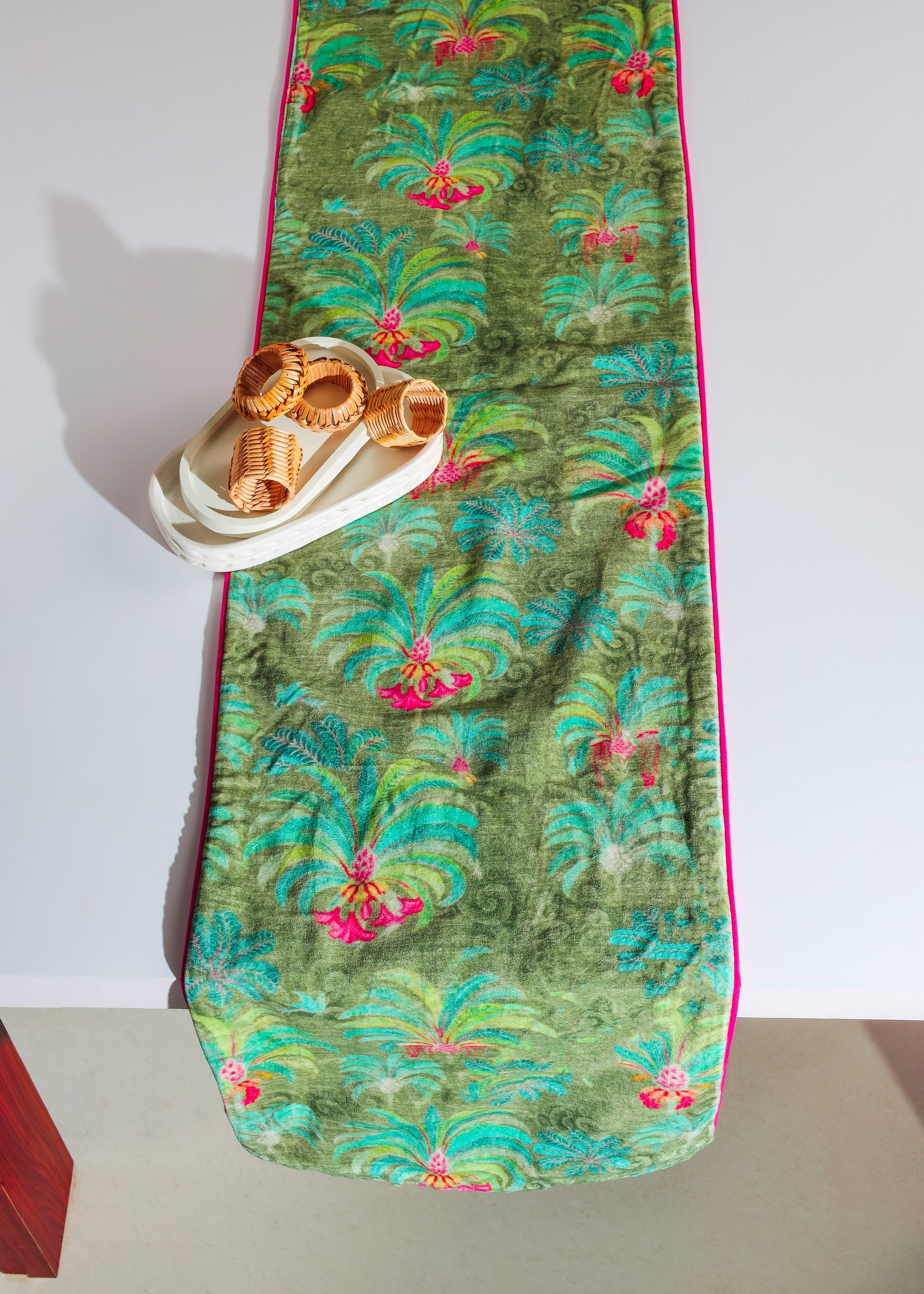 Palatial Verdant Oasis Velvet Table Runner