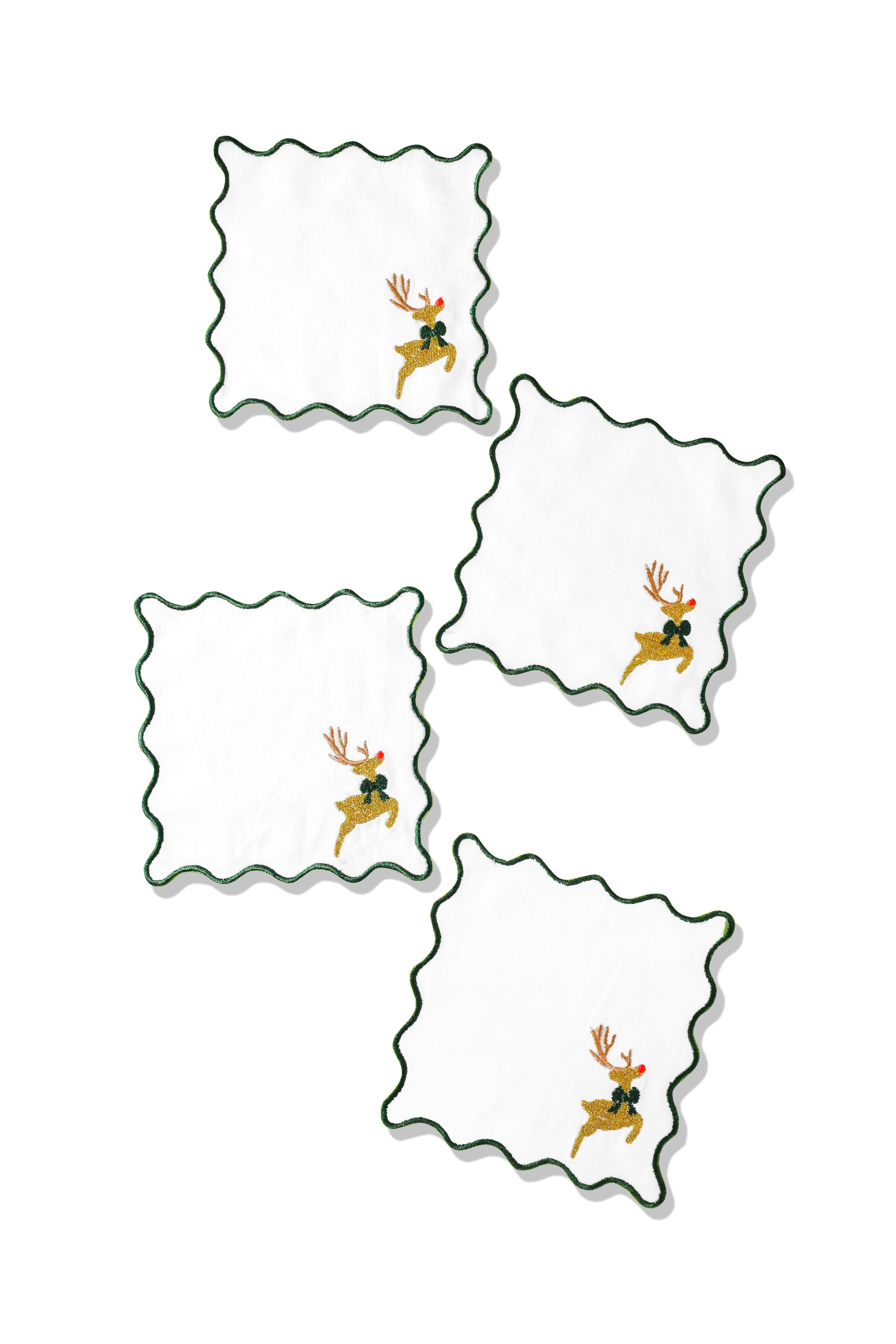 Prancing Reindeer Embroidered Cocktail Napkins – Set of 4