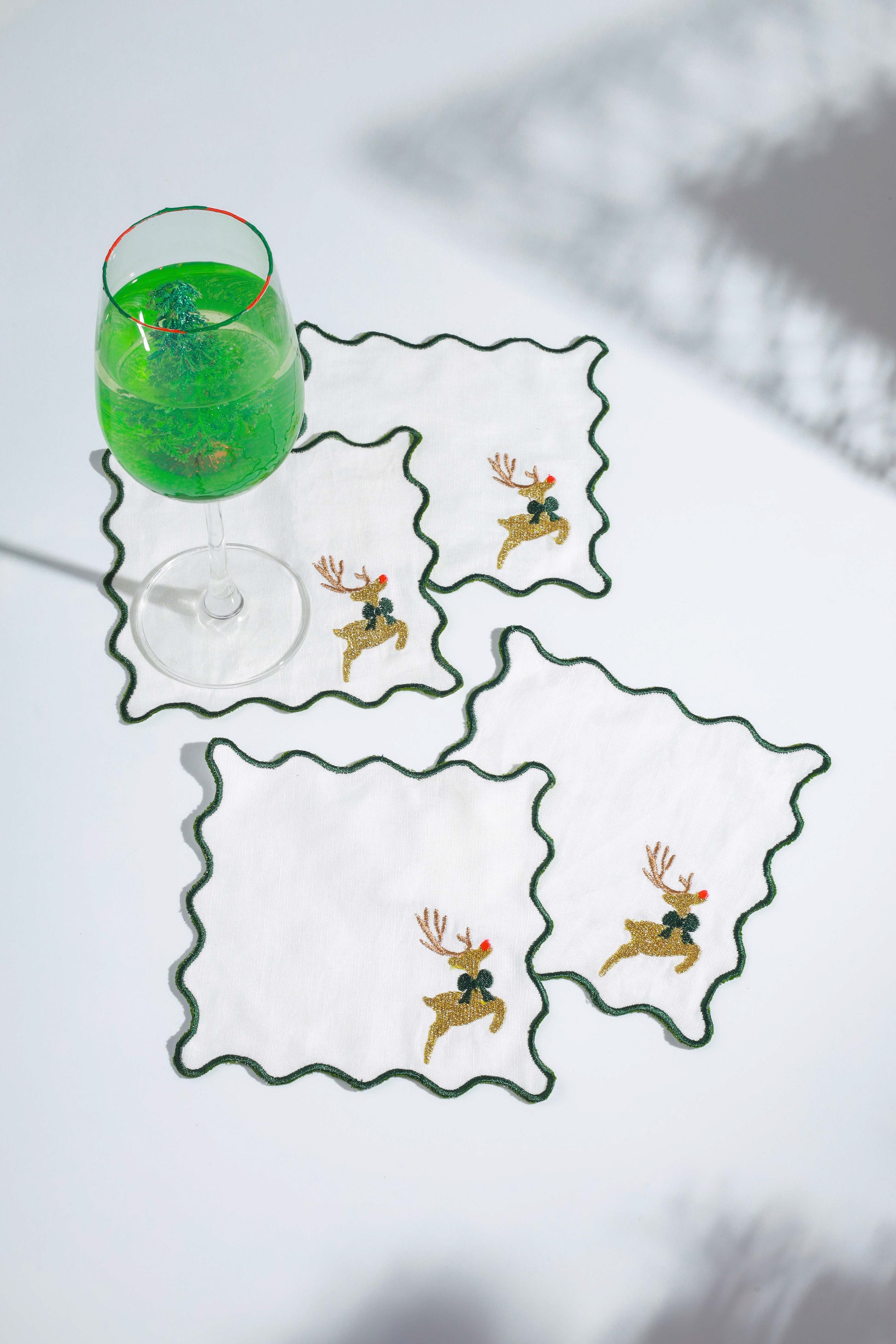 - Product Description: Bring timeless holiday elegance to your entertaining with these embroidered cocktail napkins, featuring festive holly leaves and bright red berries. The playful looped scallop border adds a cheerful finishing touch, making them a delightful accent for Christmas cocktails, holiday parties, or seasonal gifting.