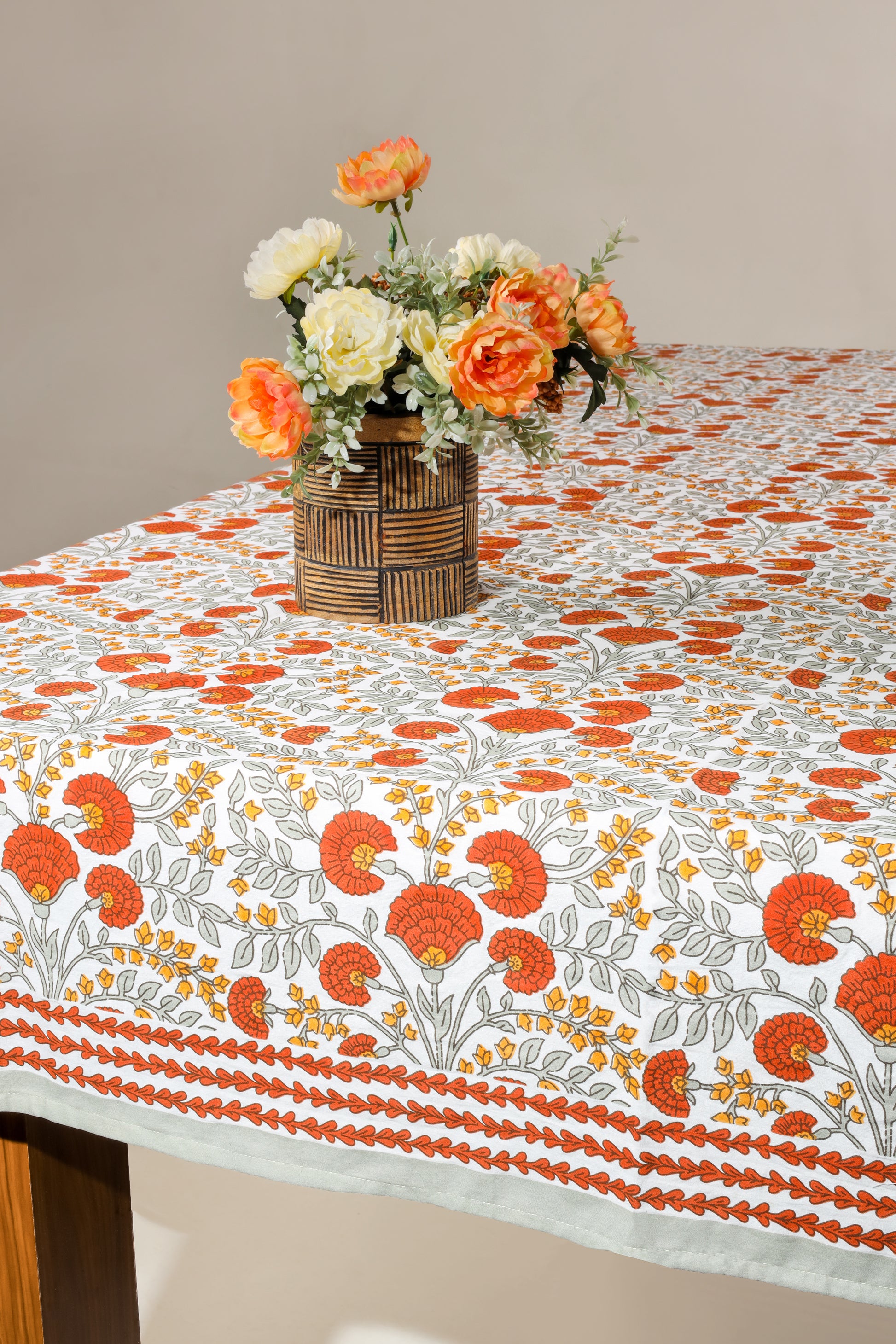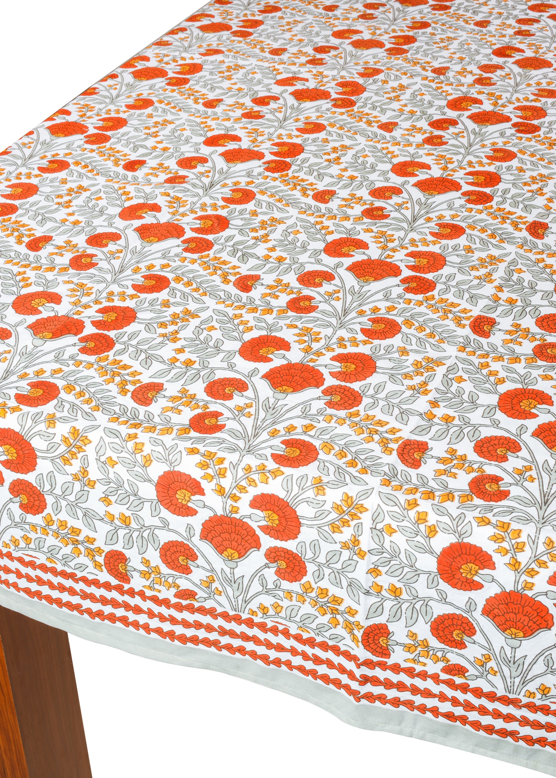 Scarlet & Slate: Floral Block Print Cotton Tablecloth
