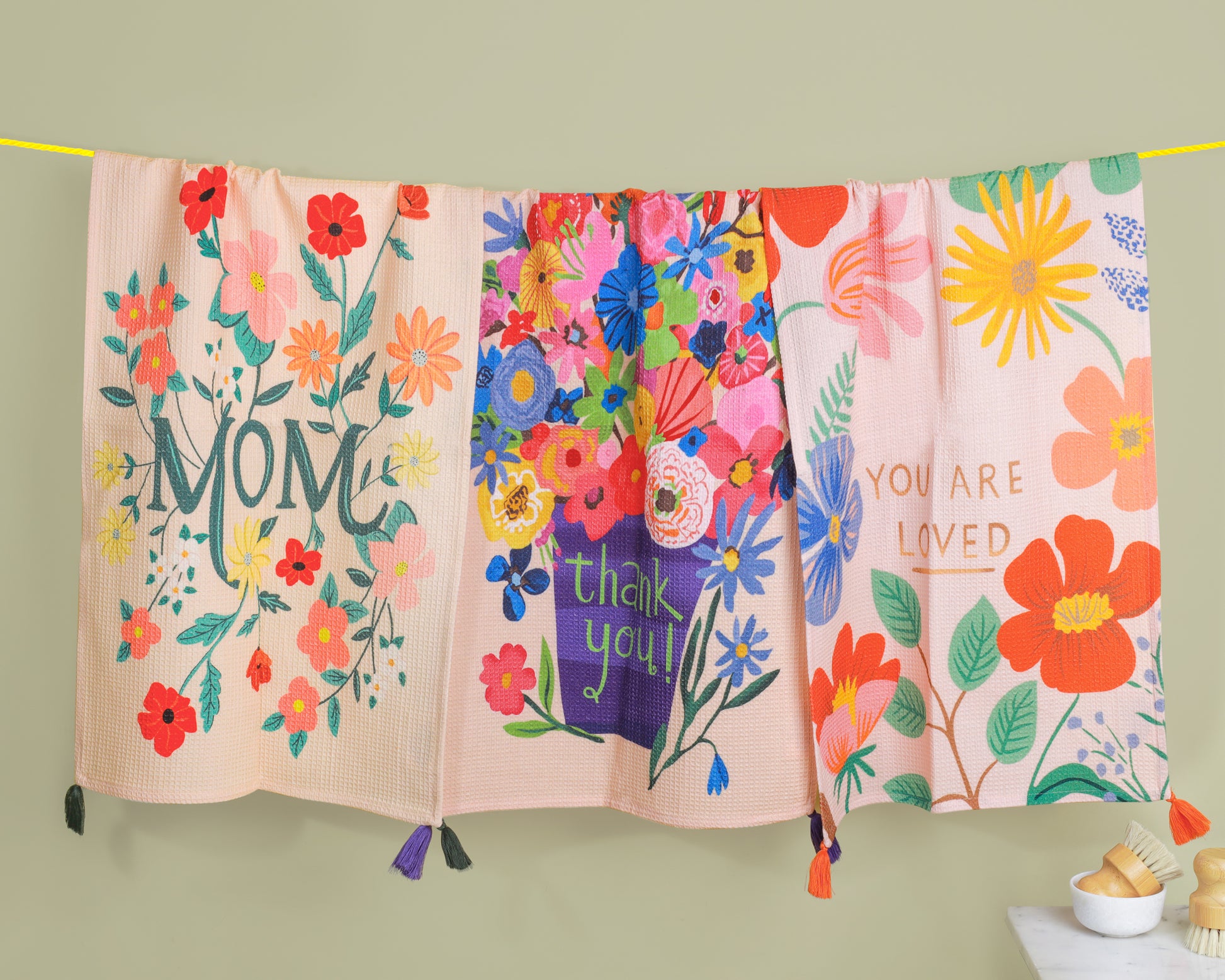 Finished with charming, multi-colored tassels for an extra touch of thoughtful detail. - Each towel measures 17" x 27" and is crafted from soft and absorbent premium cotton, blending beautiful artwork with everyday practicality. It’s the perfect gift for Mom's birthday, or just because.