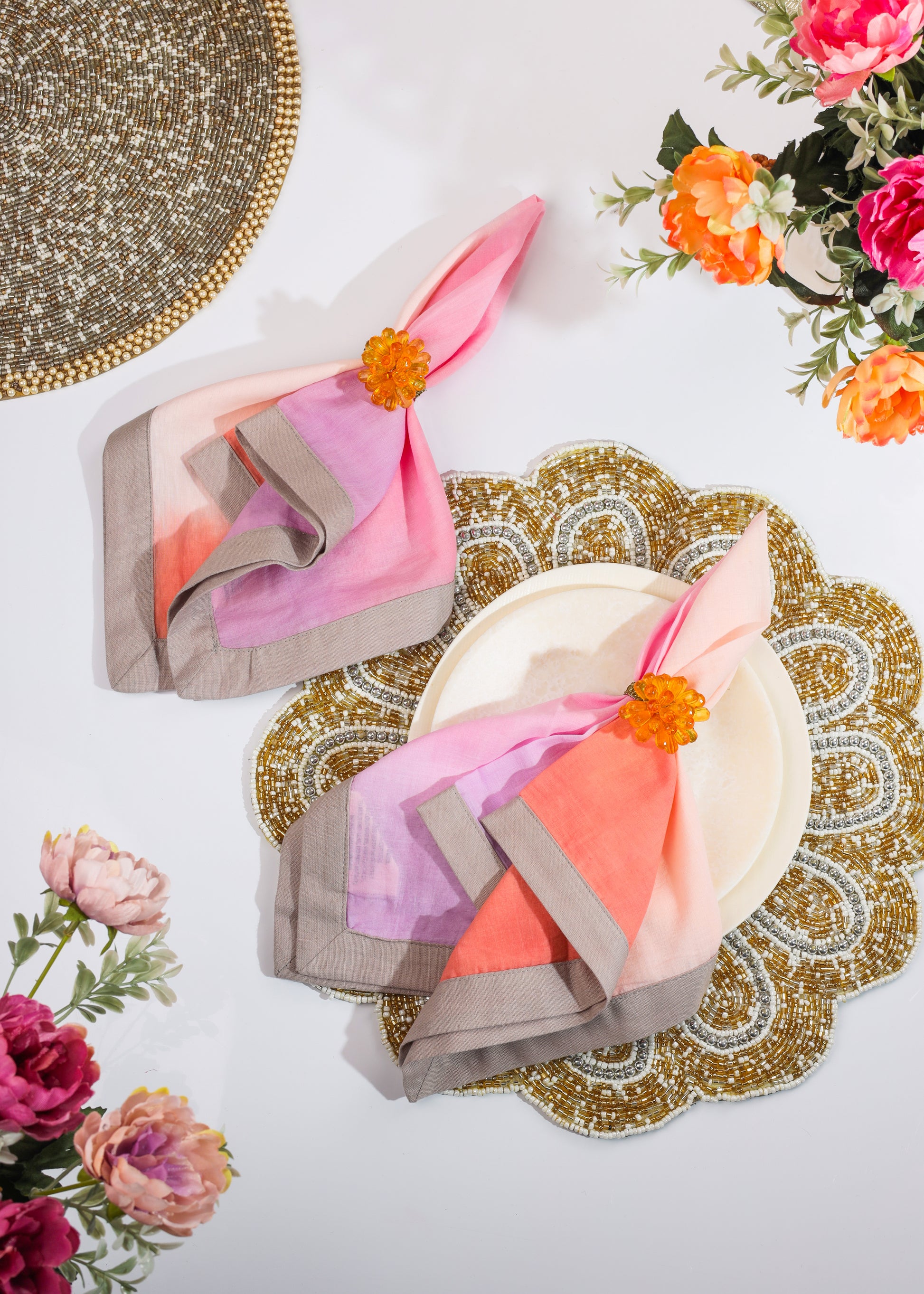 - Product Description: Capture the beauty of dusk with the Twilight Blossom Napkins. The vibrant blend of coral, pink, and lavender shades mirrors the enchanting colors of a twilight sky, making these napkins a stunning addition to any table setting. Ideal for outdoor dinners or festive occasions, they add a pop of color and charm.